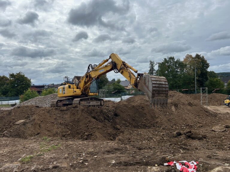 Der Abriss der alten Sporthalle ist abgeschlossen – ein Stück Geschichte weicht und bietet viel Raum für unseren Neubau. Die ersten Erdarbeiten wurden dort gestartet