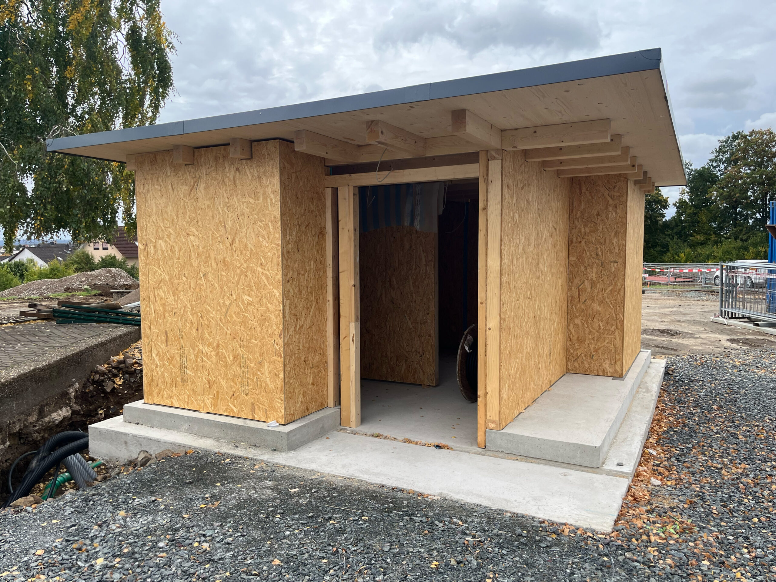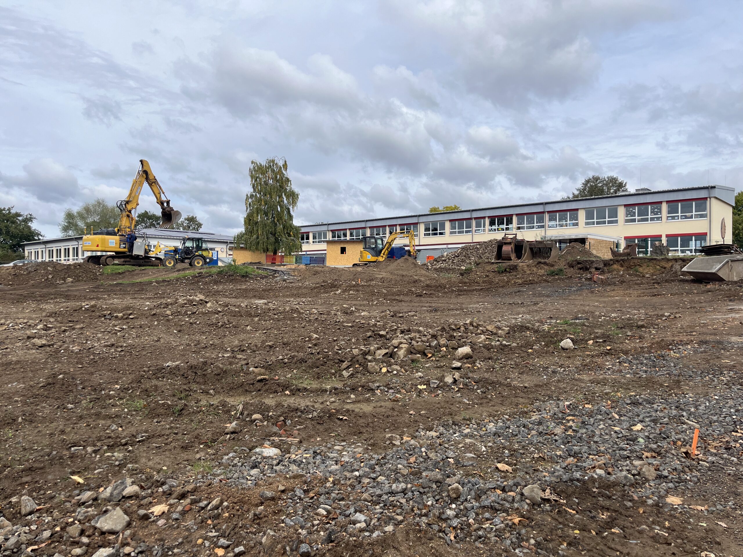 Der Abriss der alten Sporthalle ist abgeschlossen – ein Stück Geschichte weicht und bietet viel Raum für unseren Neubau. Die ersten Erdarbeiten wurden dort gestartet und es wird auch schon richtig gebaut: Die neuen Toilettenhäuschen sind der Vorbote für unseren Neubau mit Mensa, Ganztagsbereich, Sport- und Gymnastikhalle. Da sich die alten Sanitärräume im Abriss befanden, wurden als erstes die Toilettenhäuschen errichtet, um somit während der Bauzeit auf eine Interimslösung verzichten zu können. Besonders schön: Die alten Ziegelsteine werden nicht entsorgt, sondern wiederverwendet und aufgefüllt – ein nachhaltiger Beitrag mit historischem Charme, der den klimafreundlichen Holzbau auf ästhetische Weise ergänzen wird.
