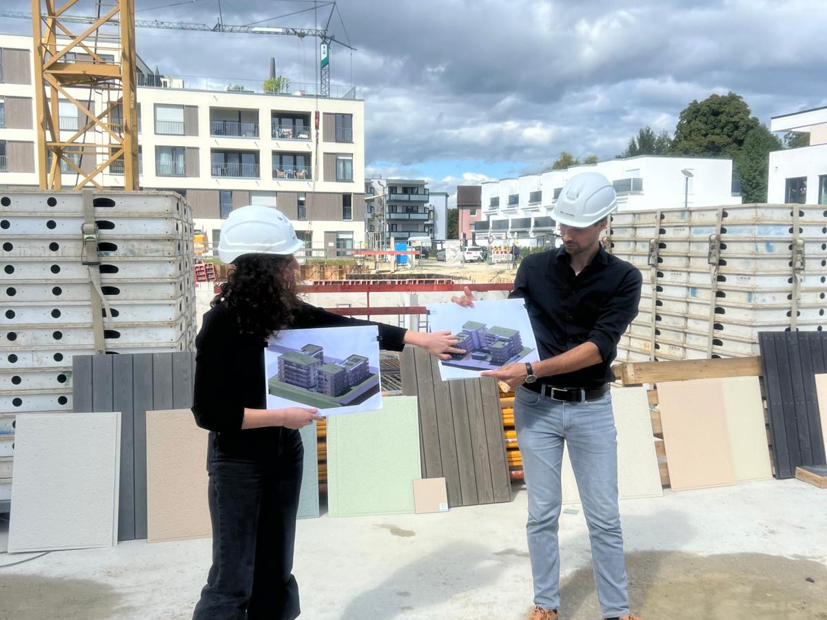 Our Building group project in Neu-Ulm is picking up speed and taking shape. The façade samples are ready for sampling: clay plaster and timber façade interact harmoniously and create a natural-looking and subtly coloured appearance.